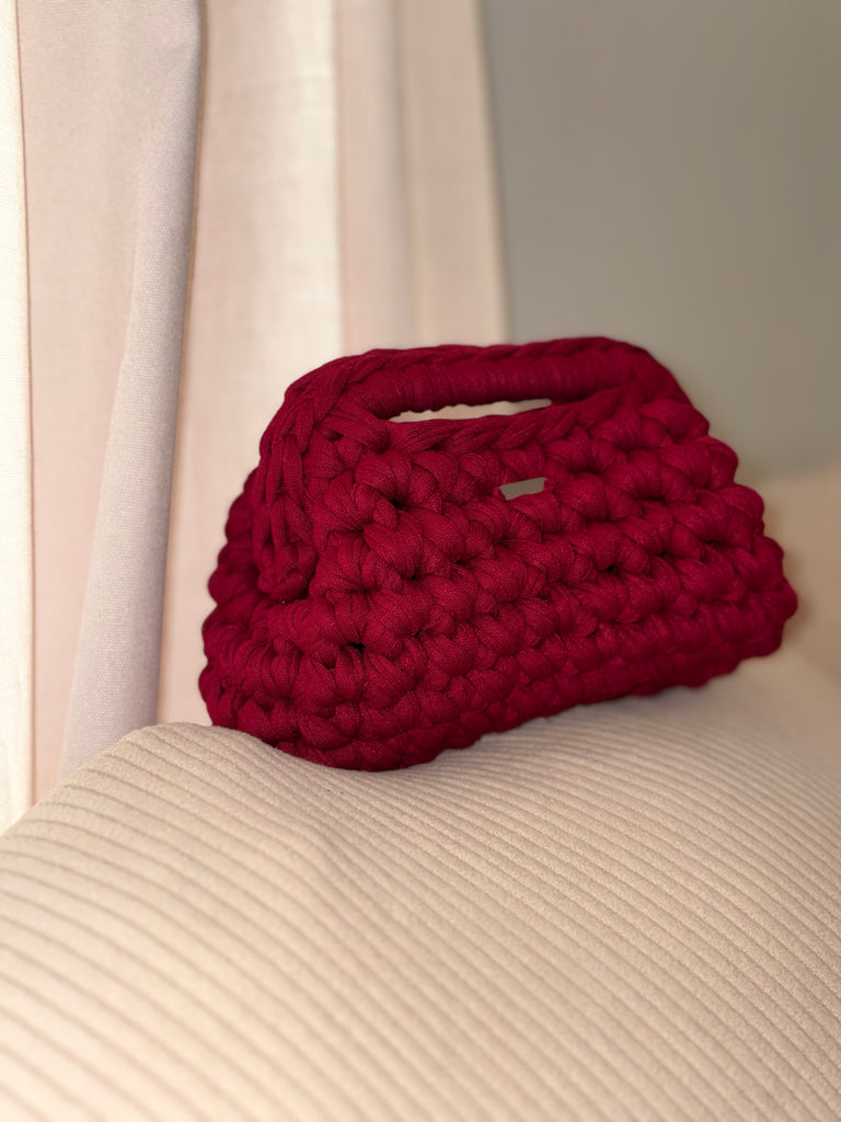 Elevate your everyday style with this chic Handmade Knitted Tote Bag in deep red. Crafted from thick, soft yarn, it features a unique handwoven texture that combines modern design with artisanal craftsmanship. The built-in handle offers a comfortable grip, while the structured silhouette makes it a versatile accessory for both casual outings and stylish evenings.
