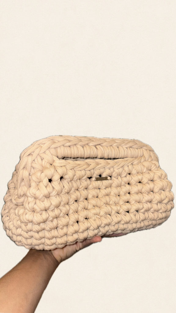 A chic, eco-conscious accessory designed to elevate your everyday style. This beige knitted tote bag is handcrafted with premium cotton yarn, creating a soft yet durable structure. Its minimalist design, combined with the textured weave and integrated handle, makes it a versatile choice for both casual and semi-formal looks. Whether for a coffee date, shopping trip, or a stylish day out, this bag is the perfect blend of functionality and fashion.